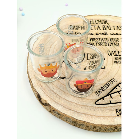 Divertidos vasitos de cristal con la silueta de los tres Reyes Magos